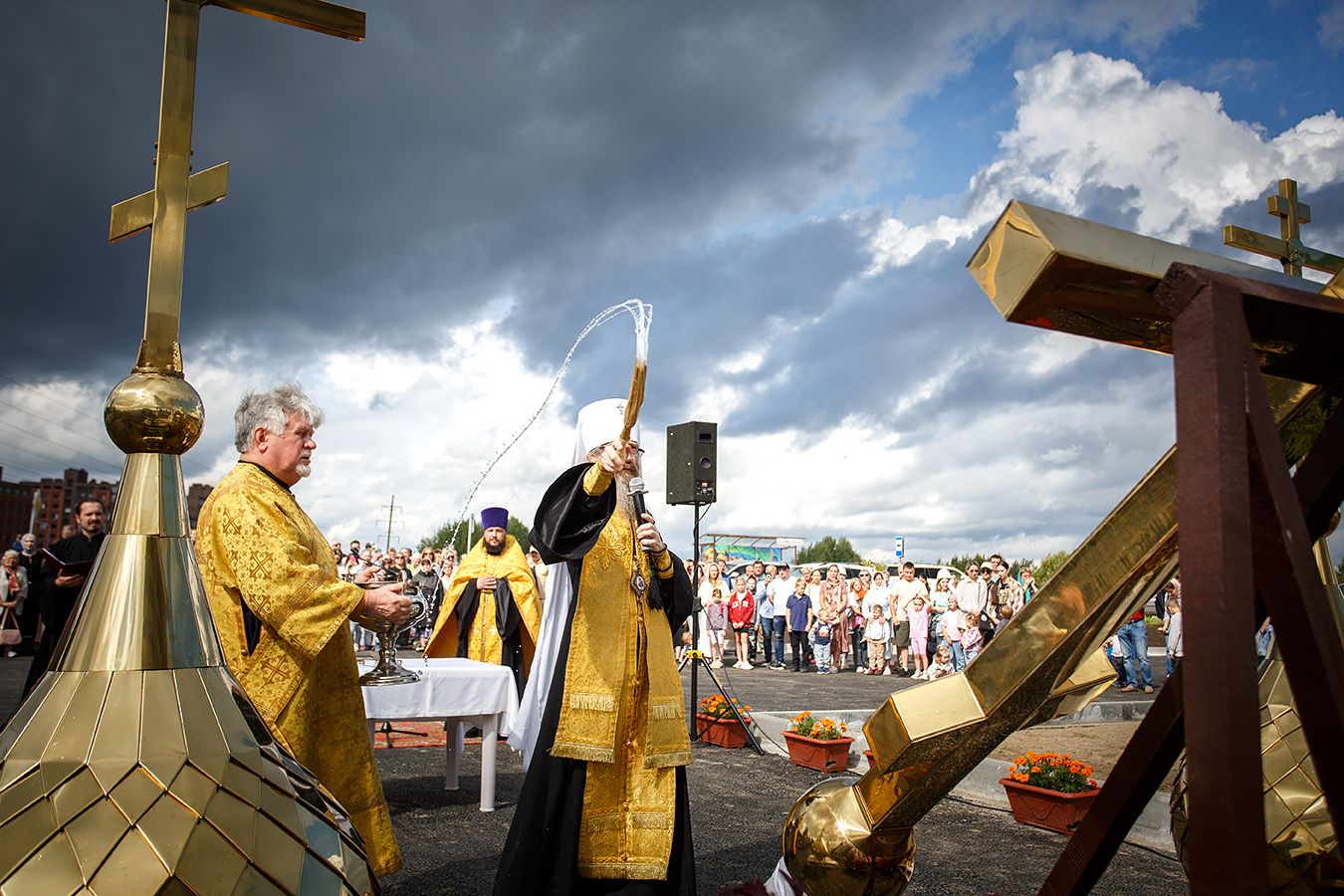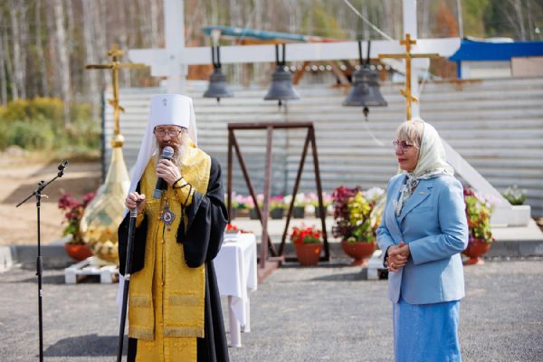 —Наступило то время, когда мы понемногу собираем разбросанные камни, когда мы строим и восстанавливаем порушенные святыни, отливаем колокола, и вместе с ними снова возвращаются к прежнему течению жизни наши обычаи. Мы снова обретаем корни, которые питают жизненными соками наш народ, которые вливают в него ту энергию, которая позволяет народу с уверенностью смотреть в будущее. В наше время государство делает очень многое для возрождения духовно-нравственных ценностей. Великое счастье, если к возрождению этих ценностей будет осознавать причастным себя каждый из нас. Трудами многих благодетелей сегодня восстанавливаются храмы, часовни, отливаются колокола. Мне бы хотелось призвать всех, собравшихся сегодня на чин освящения купольного креста и колоколов, чтобы никто из нас не остался в стороне и каждый посильно принимал участие в созидании и восстановлении тех храмов, которые во множестве по всему лику земли нашей сегодня восстанавливаются и строятся, создавая из нашего государства не просто мощную непоколебимую державу, но чтобы государство наше созидалось как Русь Святая, которая бы была здесь на земле отражением Горнего Небесного Иерусалима — Града Небесного Царя и Бога Нашего.