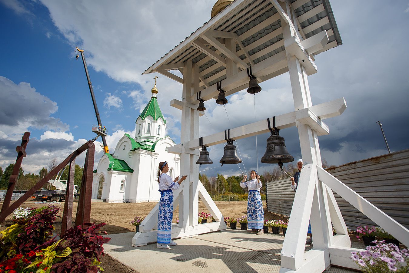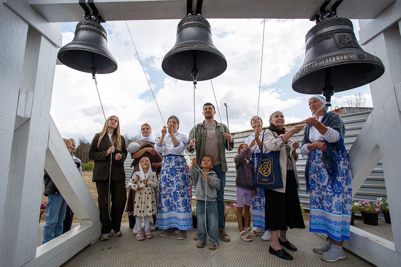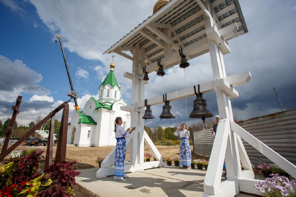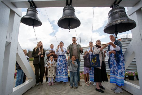 В завершении торжественного события состоялся концерт колокольного звона на новоосвященных колоколах в исполнении прекрасных девушек-звонарей — выпускниц Школы звонарей при Воскресенской церкви.